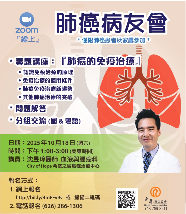 報名後馬上有回應顯示上線會議代碼和密碼,請拍照並記錄進入視頻聚會方法,如需請致電 718-799-8211 留言以獲取進入方式。歡迎癌友及所有朋友參加!